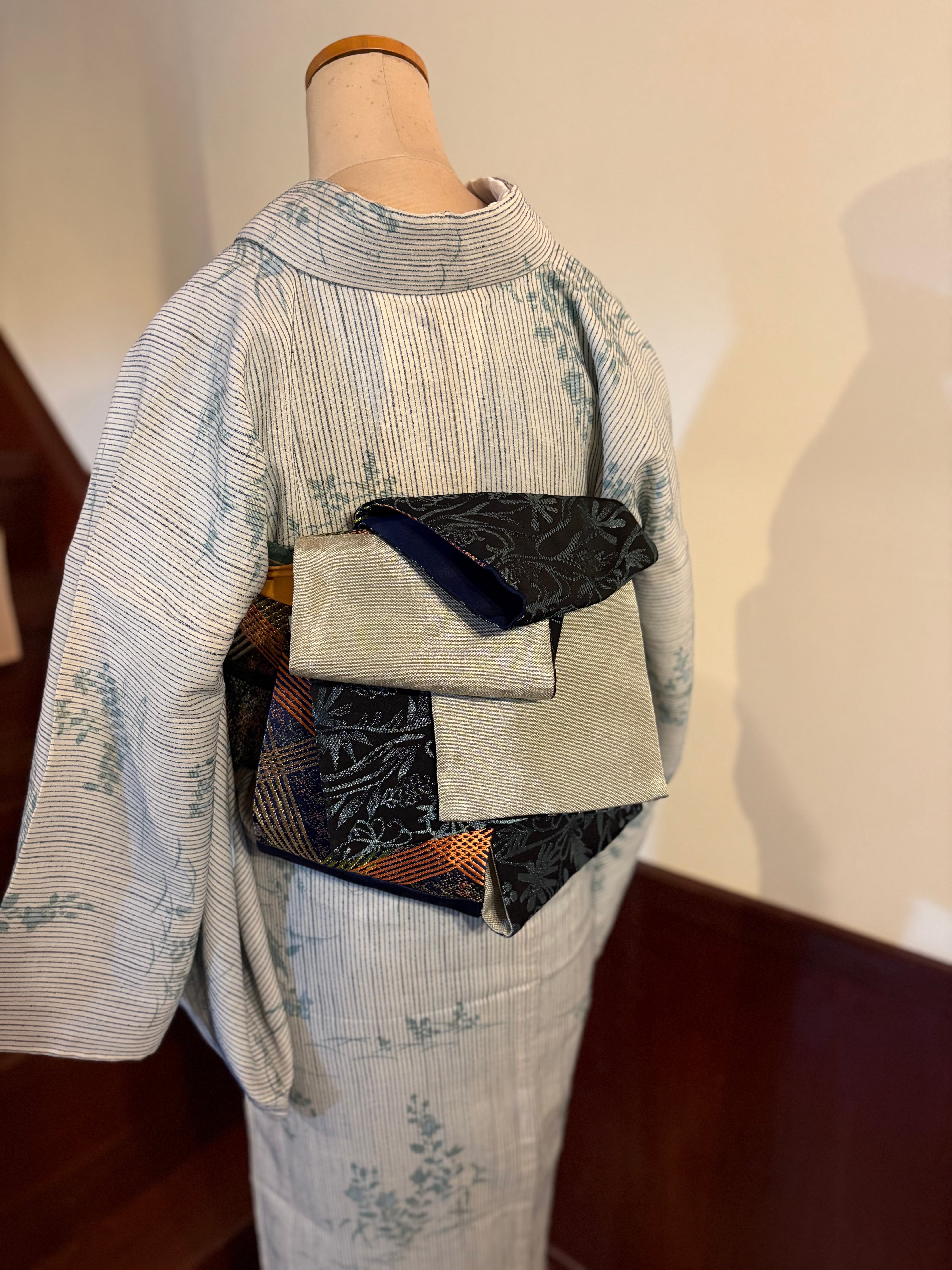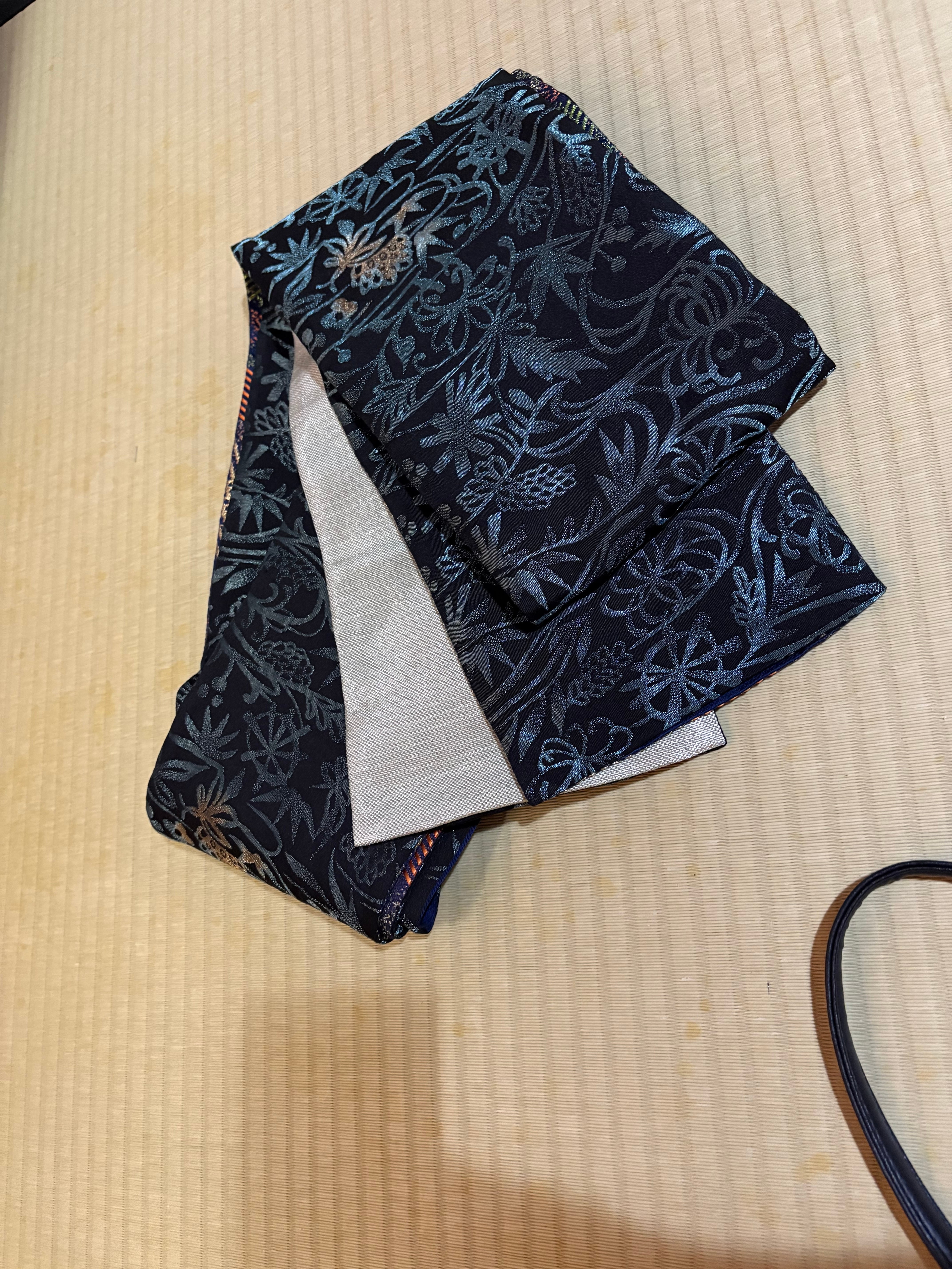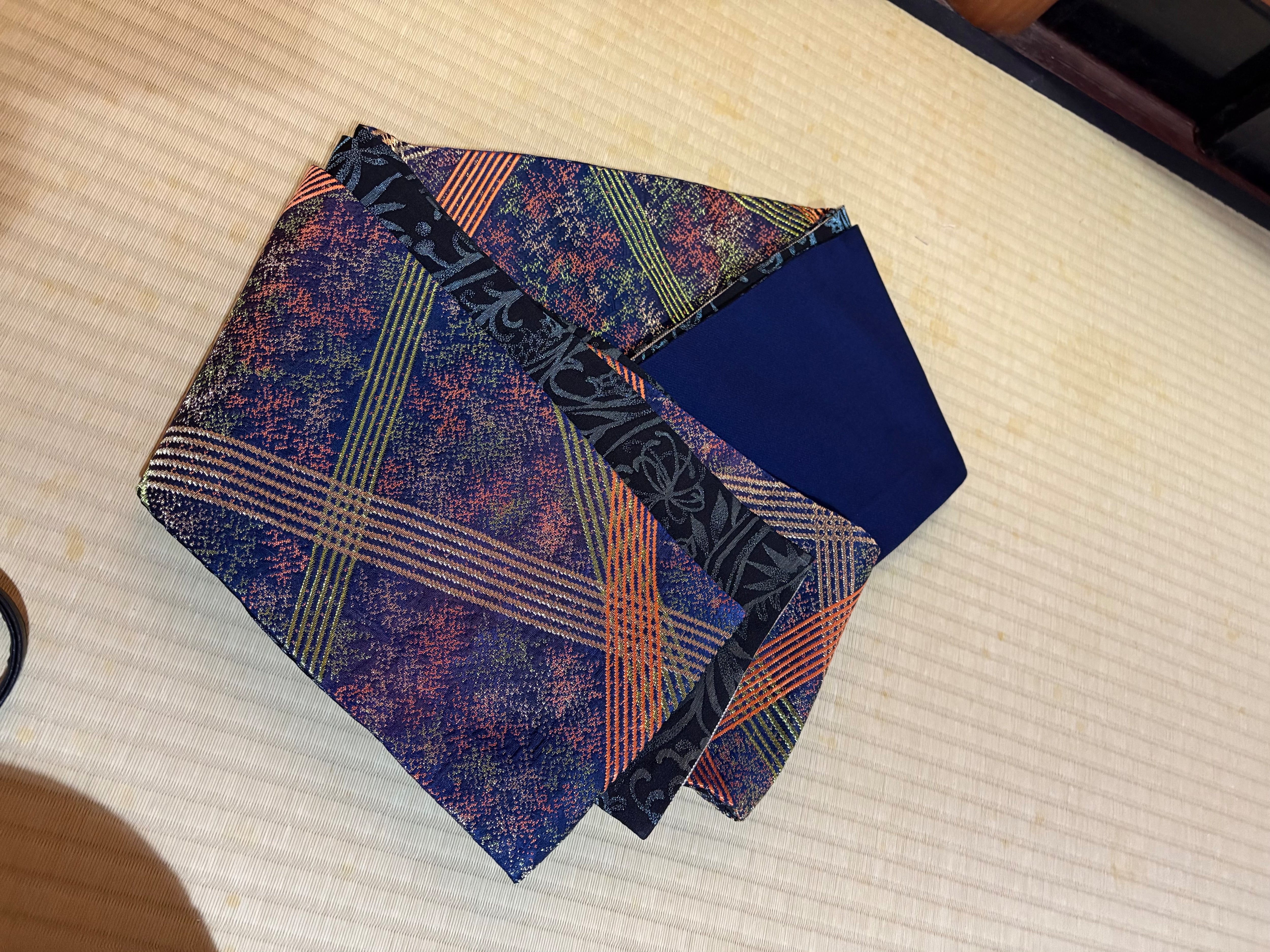 片面は、レーザー光線みたいな柄がカッコイイ八寸と、マジョリカお召のリバーシブル