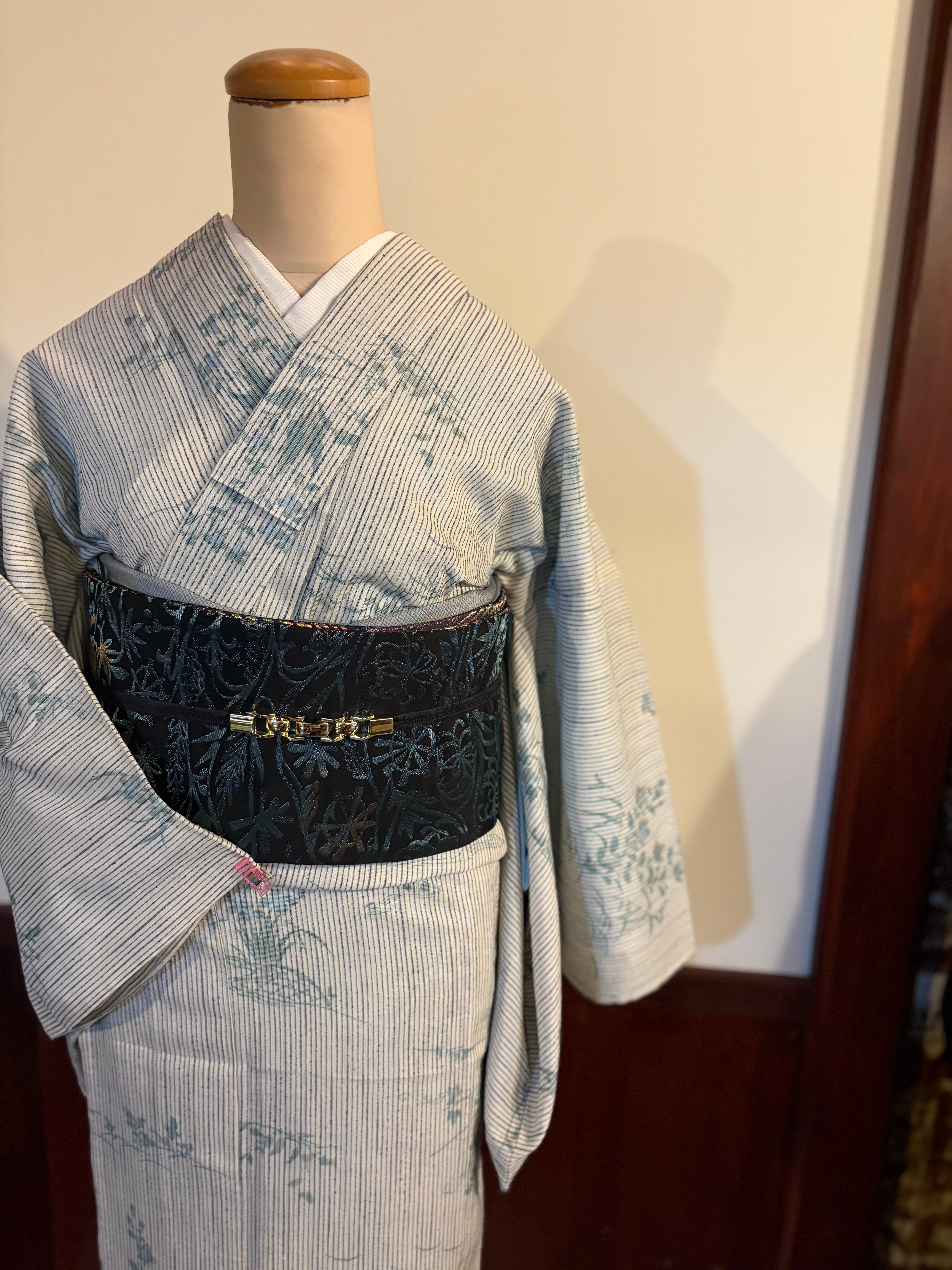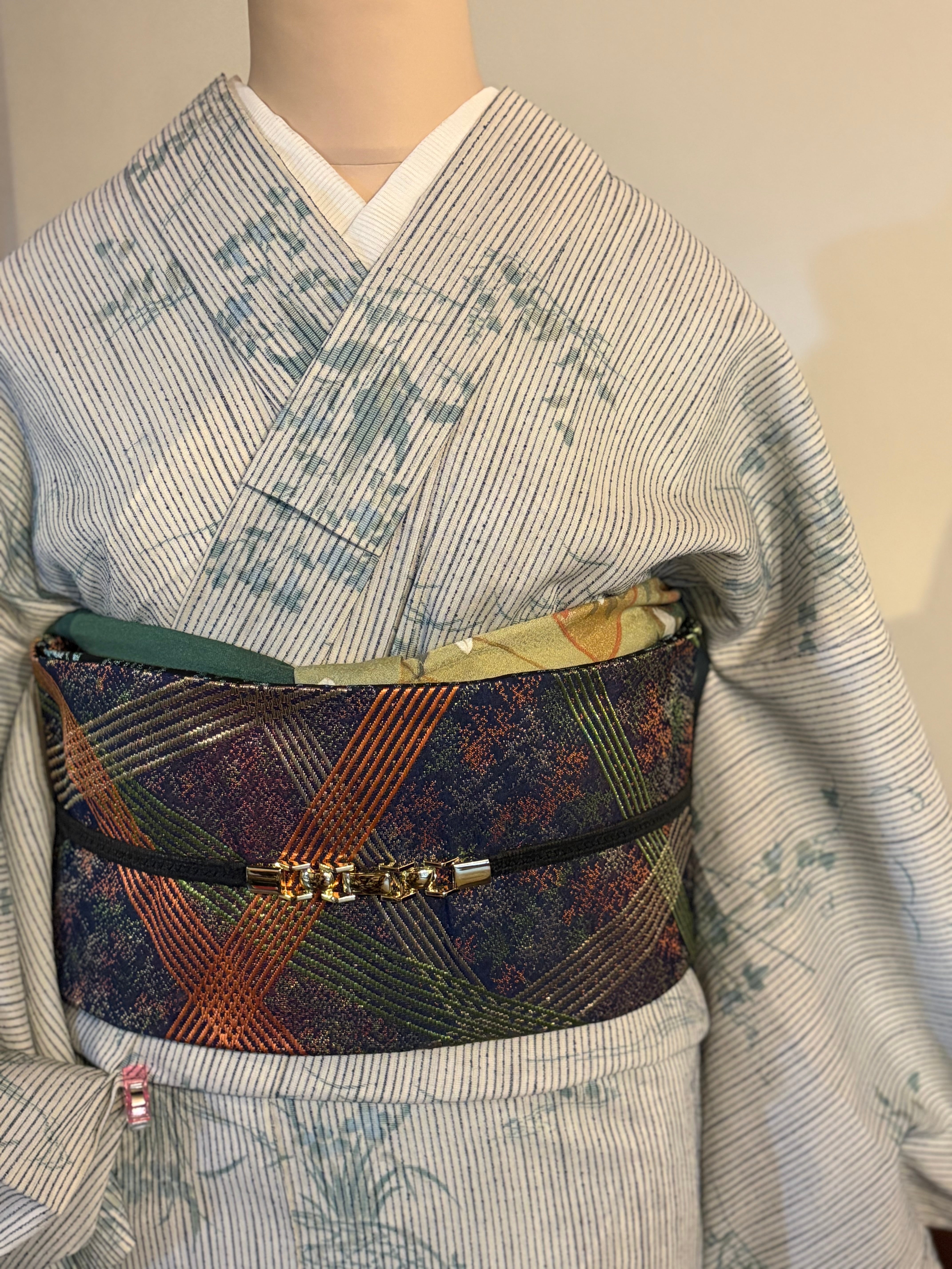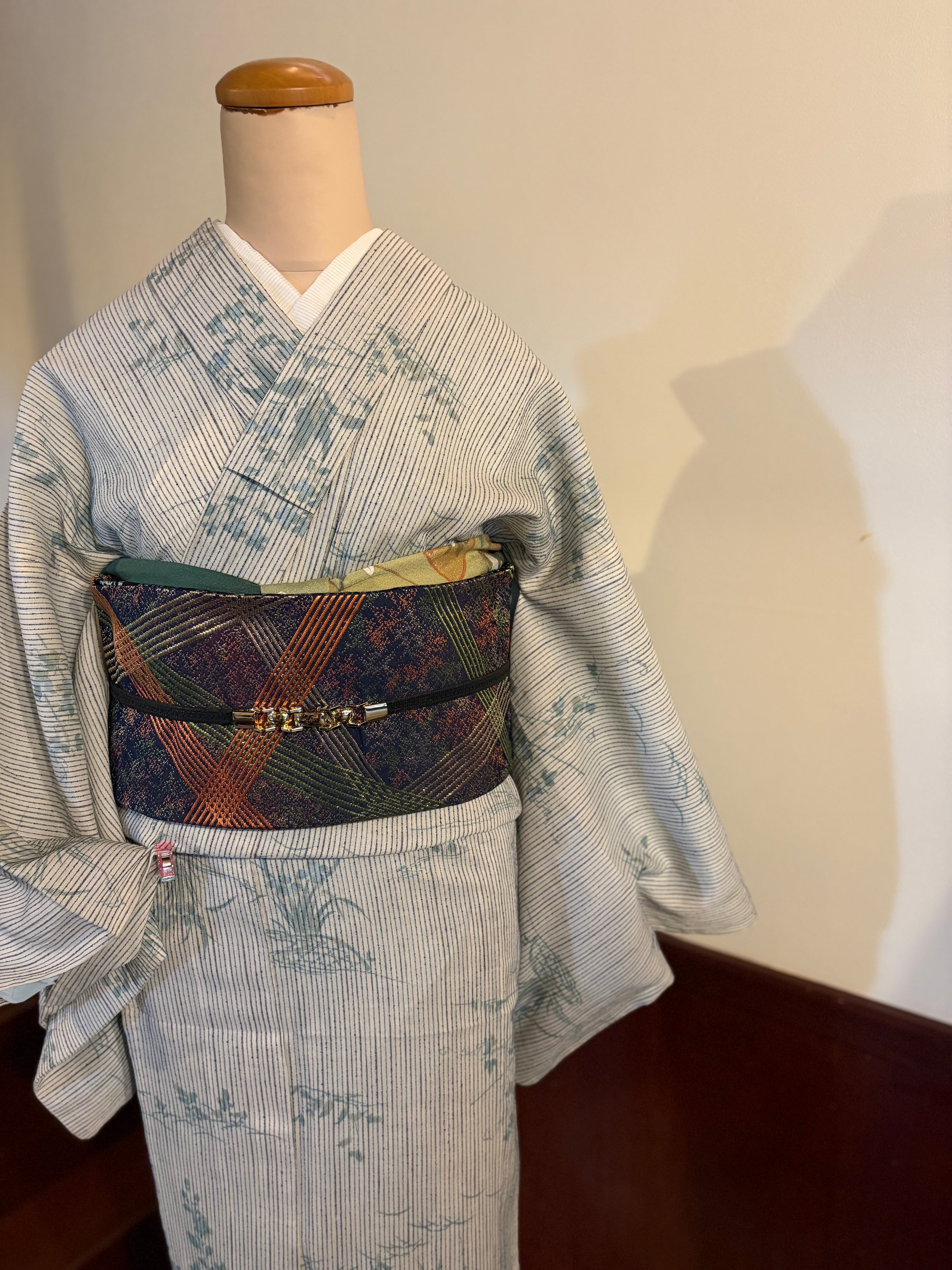 片面は、レーザー光線みたいな柄がカッコイイ八寸と、マジョリカお召のリバーシブル