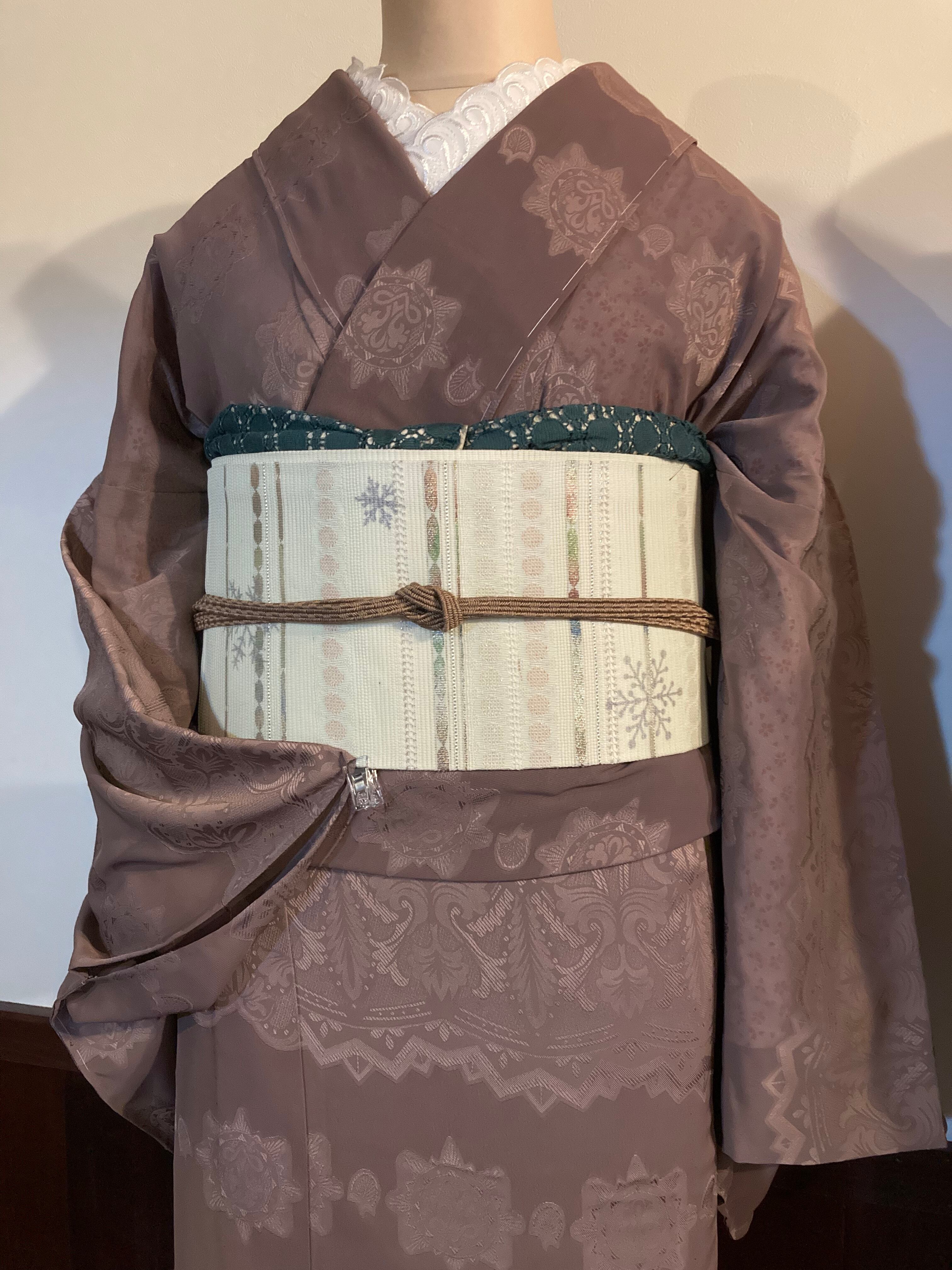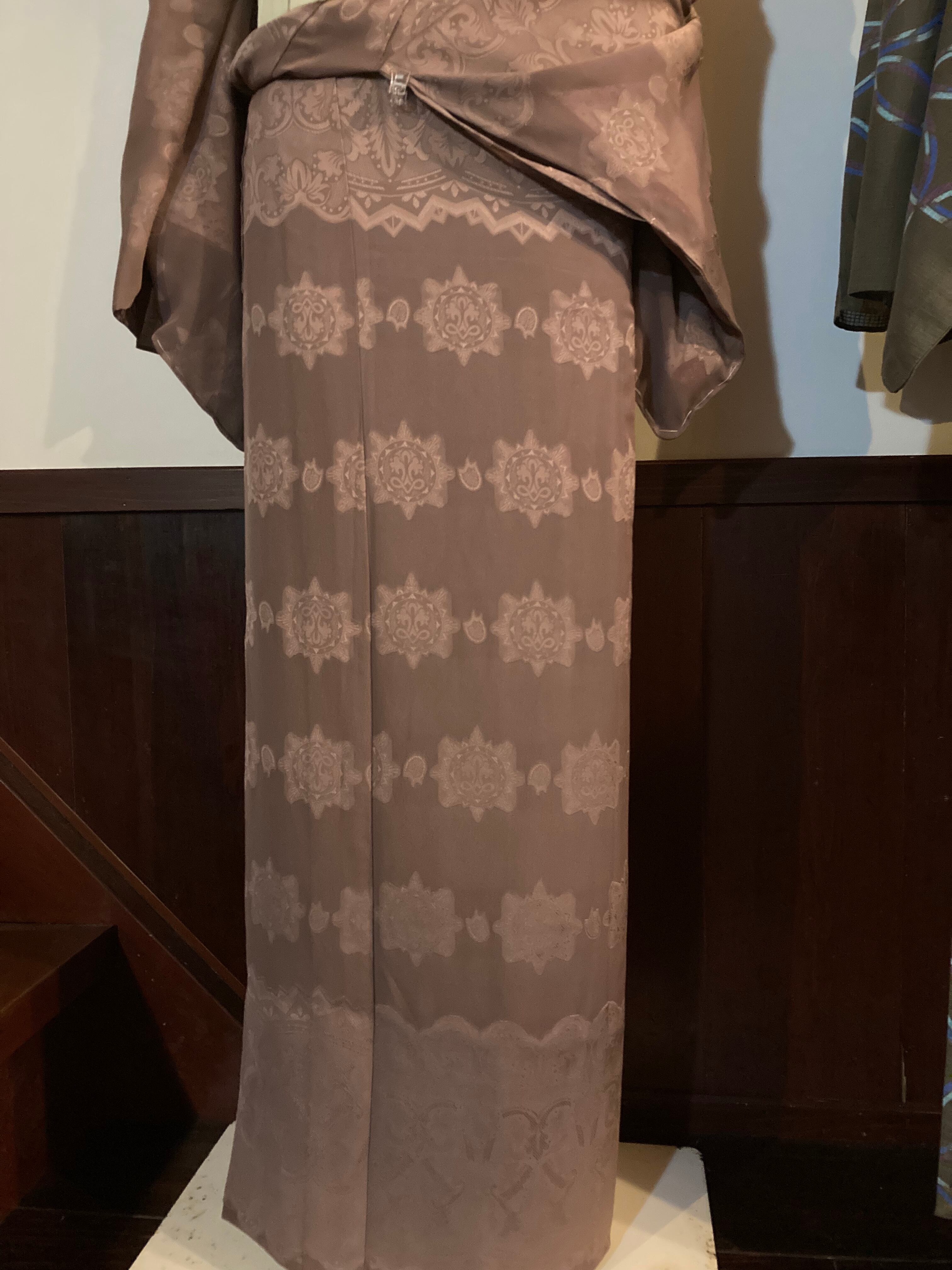 嵯峨鼠色 レースジャガード着物