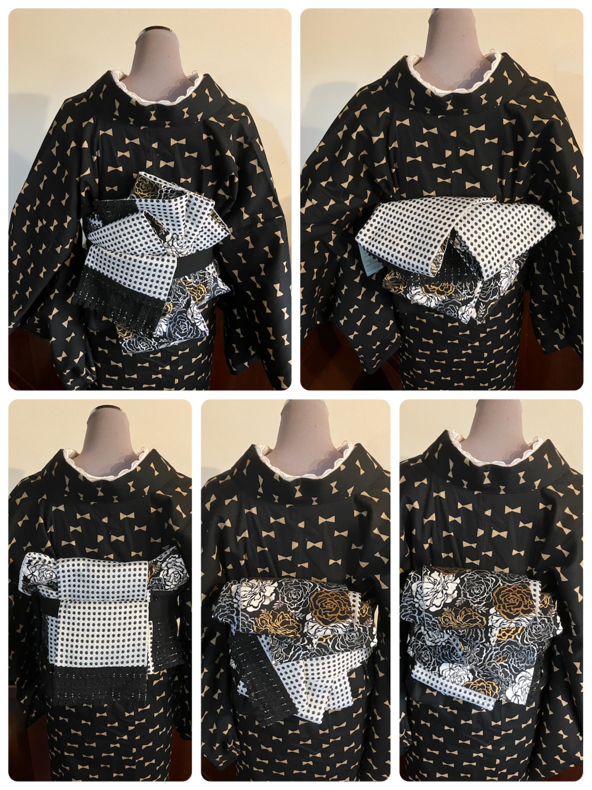 モノトーンのストライプにレースの面と白ベースのモノトーンドット、黒ベースにシルバーのリバーシブル