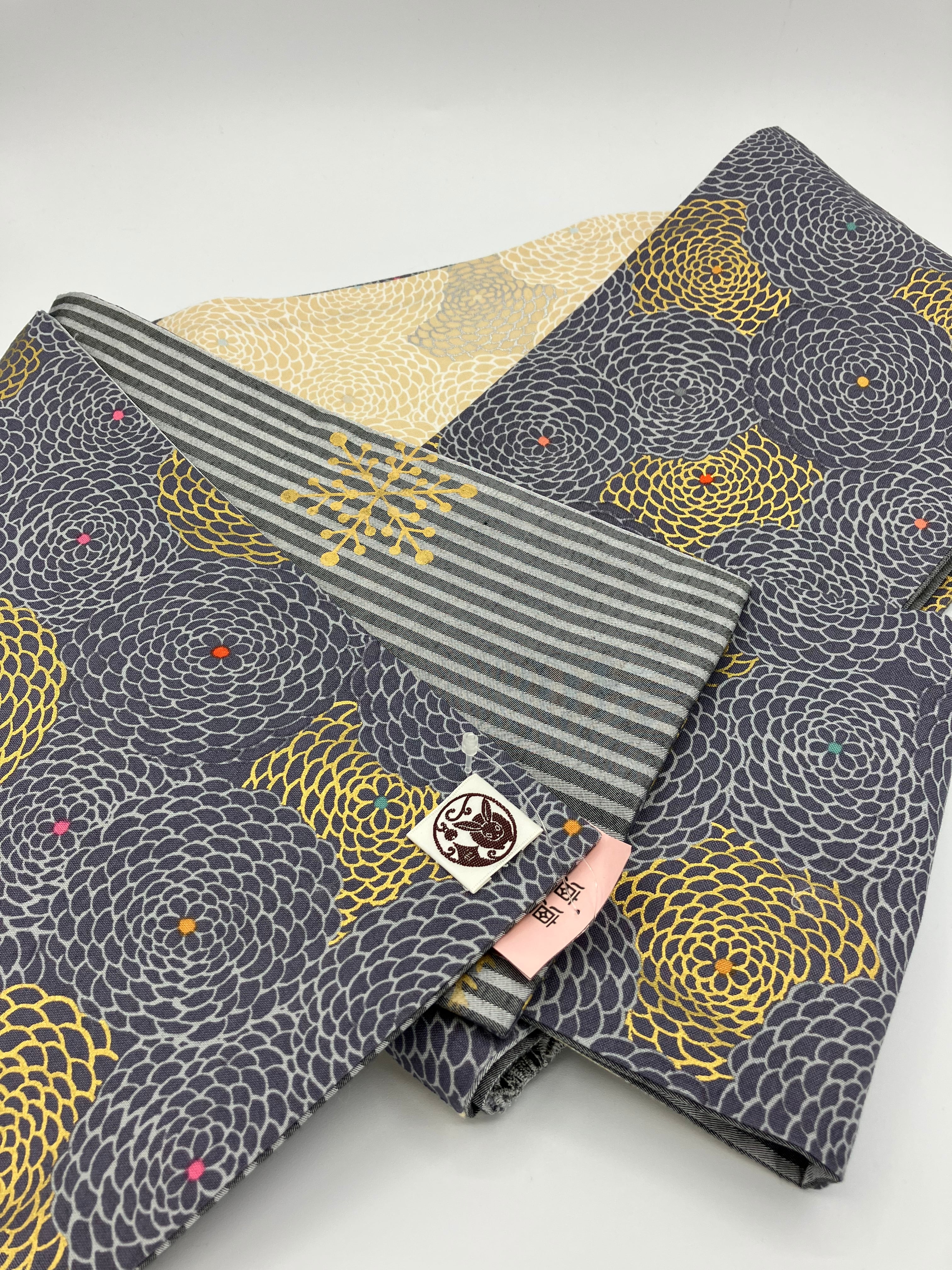ゴールドが入ったグレーとクリームベースのむじな菊の面
