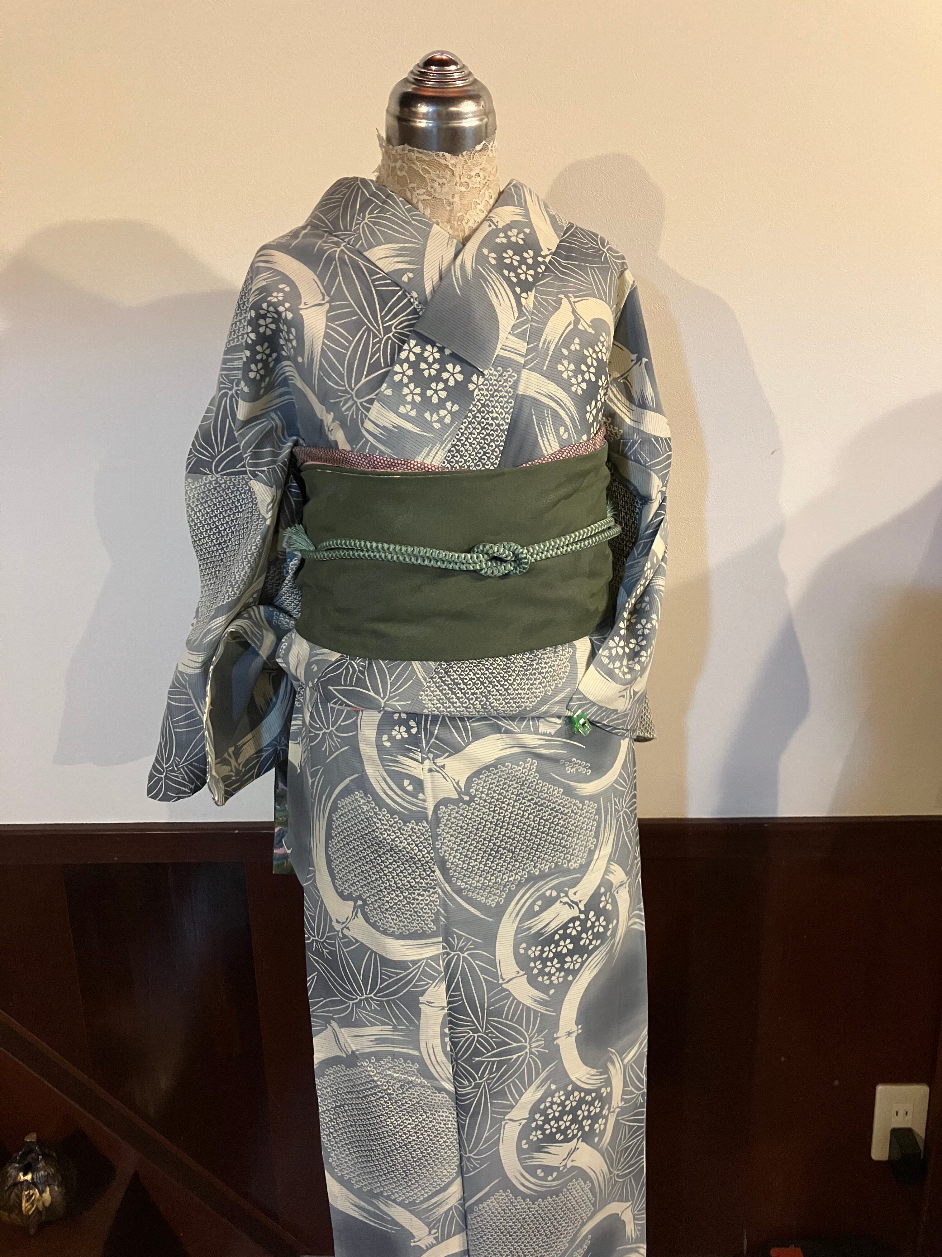画像より、若干緑寄りの浴衣になります
