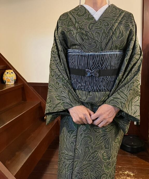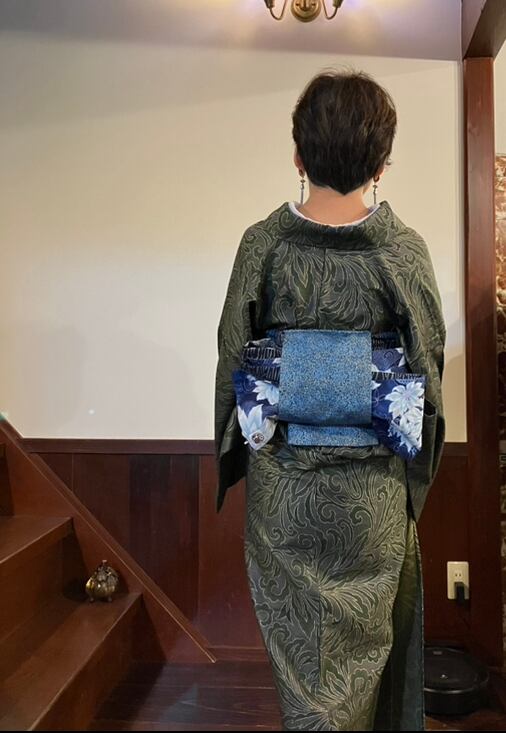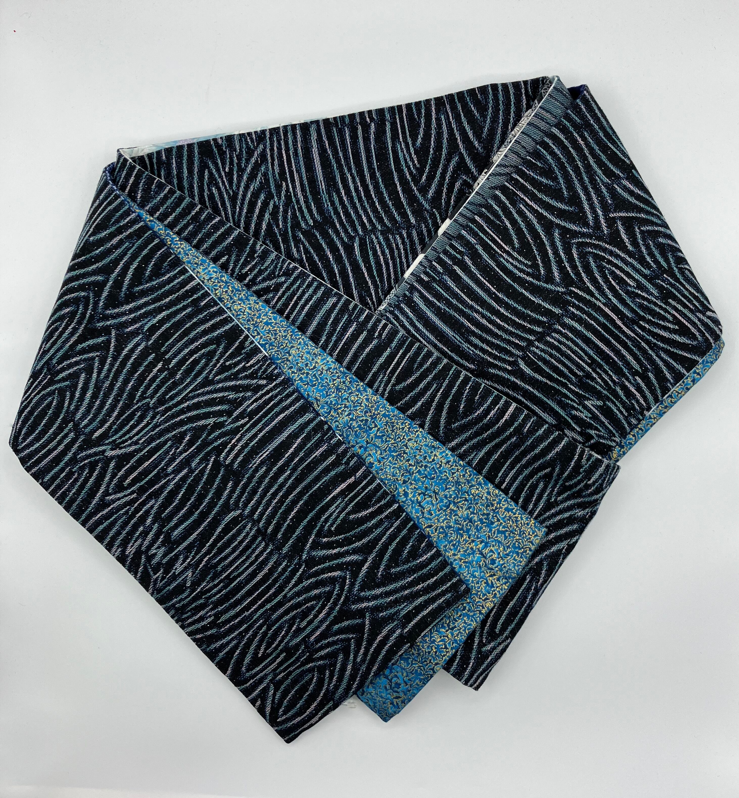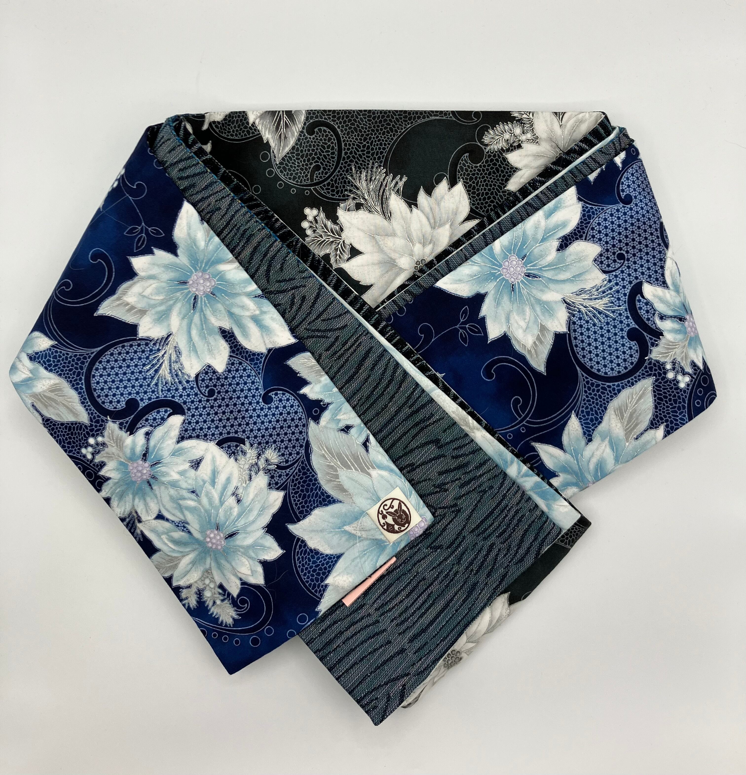 ブルーのポインセチアの大人クリスマスカラー半幅帯